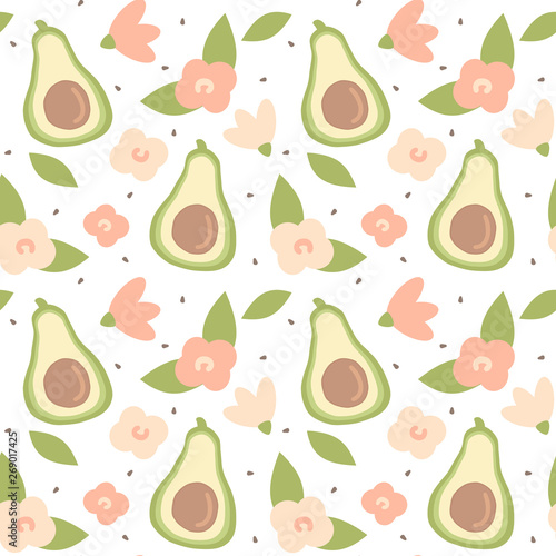Cute Lovely Cartoon Summer Seamless Vector Pattern Background Illustration With Hand Drawn Avocado And Flowers Buy This Stock Vector And Explore Similar Vectors At Adobe Stock Adobe Stock