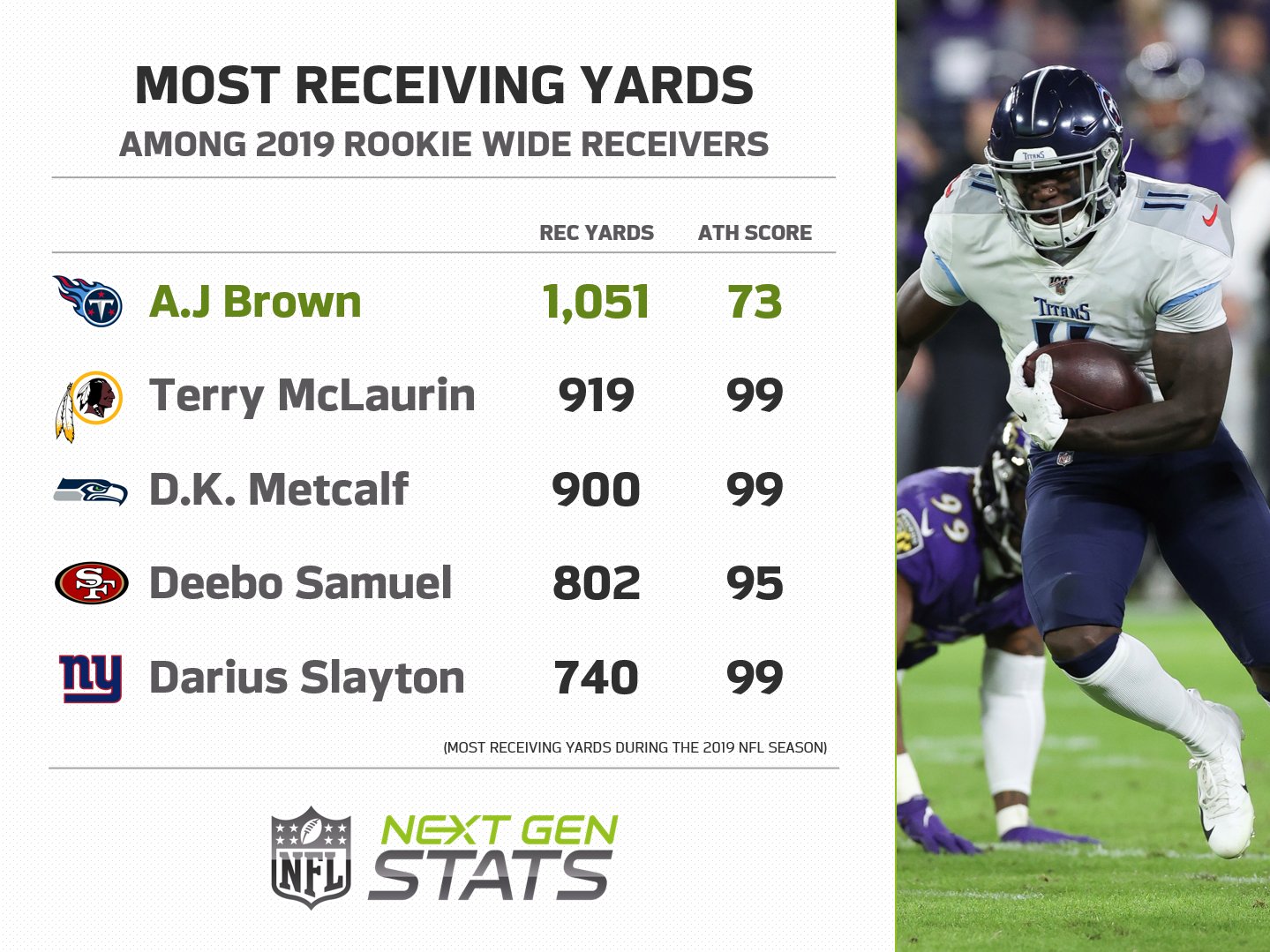 Next Gen Stats On Twitter Four Of The Top 5 Rookie Wide Receivers By Receiving Yards In 2019 Finished With A 95 Athleticism Score Terry Mclaurin D K Metcalf Deebo Samuel And Darius
