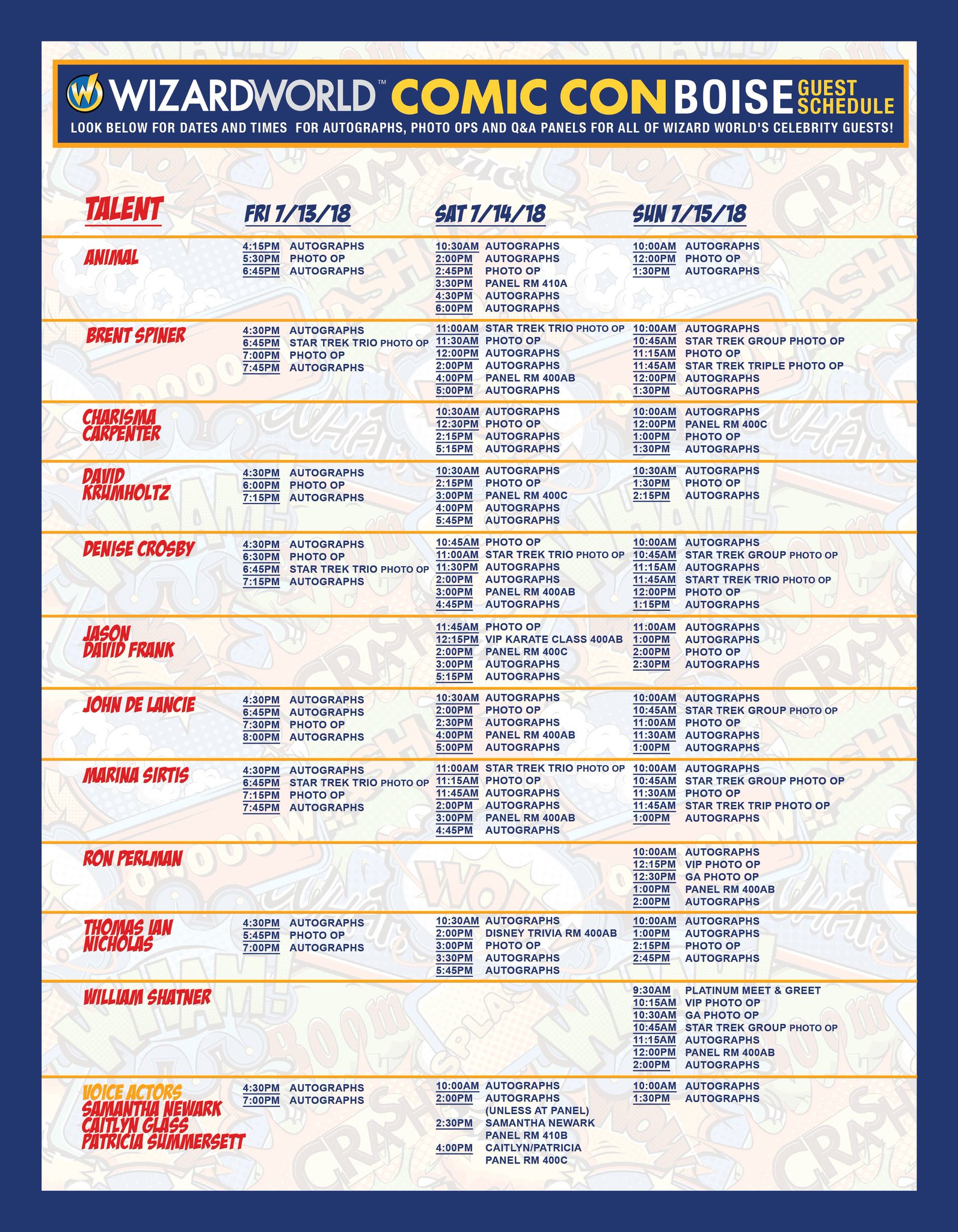 96 9 The Eagle Kkgl On Twitter Here S The Celebrity Schedule For Wizardworld This Weekend In Boise